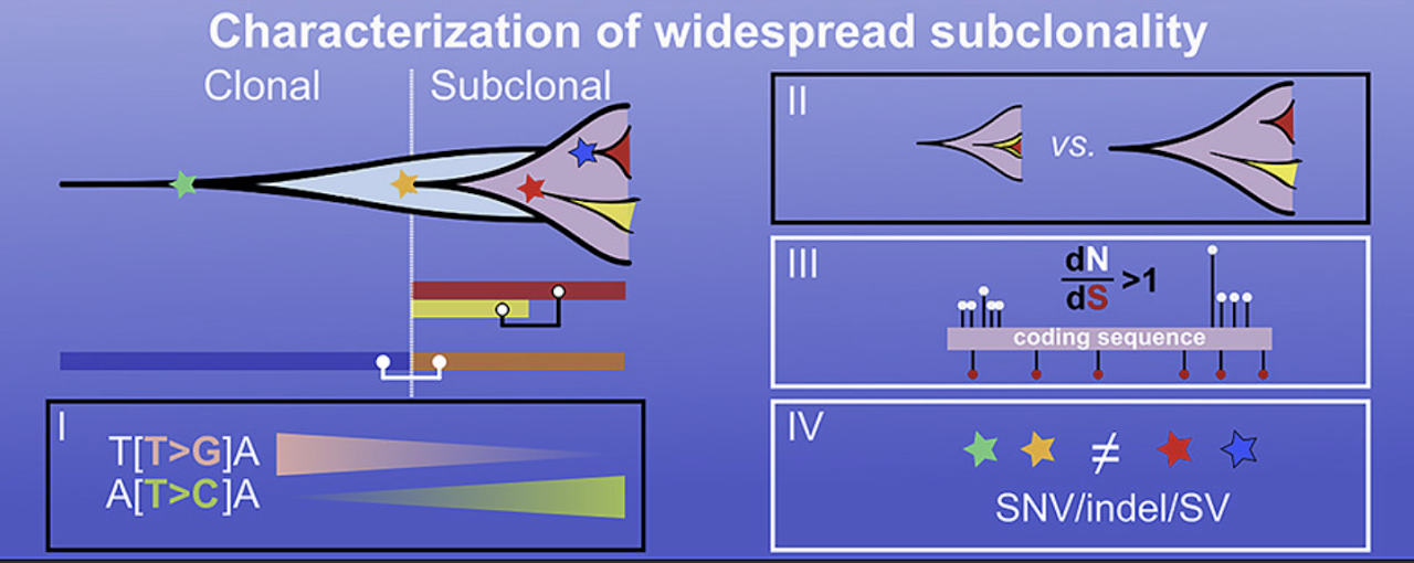 "We observe positive selection of subclonal driver mutations across most cancer types and identify cancer type-specific subclonal patterns of driver gene mutations, fusions, structural variants, and copy number alterations as well as dynamic changes in mutational processes between subclonal expansions."